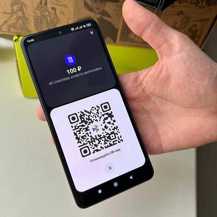 Для СБП: покупатель считывает QR-код своим смартфоном и производит оплату через приложение любого банка. |
