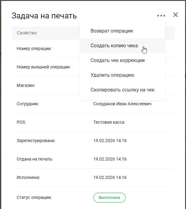 Кликните по ошибочной операции, далее три точки → Создать копию чека.