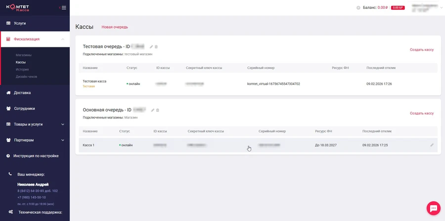 Проверить версию ФФД можно в личном кабинете КОМТЕТ в разделе Фискализация → Кассы. В этом разделе найдите кассу, которую хотите проверить, и нажмите на нее.