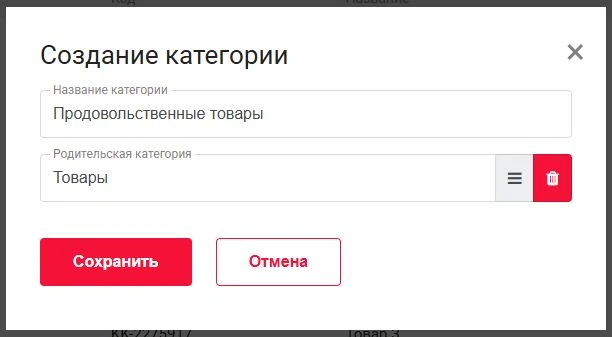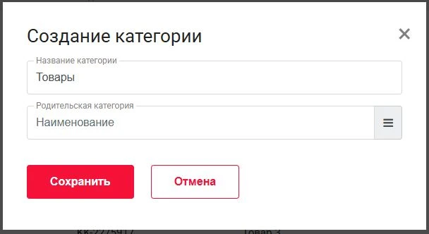 В открывшейся форме укажите название и родительскую категорию. Если у вас не будет вложенных категорий, родительскую категорию можете не указывать.
