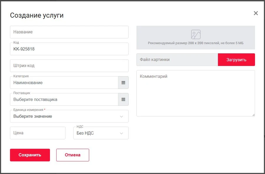 | Единица измерения | Единица измерения вашей услуги. По умолчанию указываются штуки | ![]() |