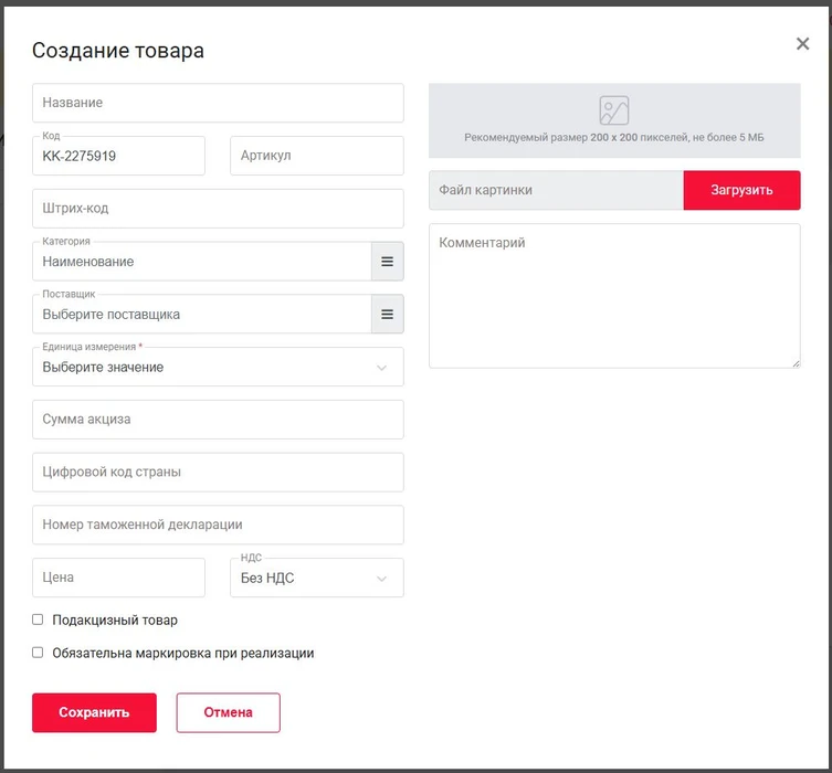 | Подакцизный товар | Отметка ставится, если товар подакцизный | |
