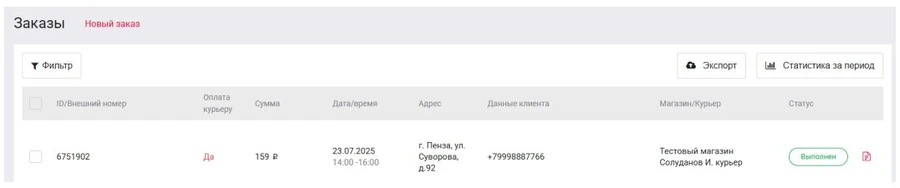 Заказ перейдет в статус Выполнен.
