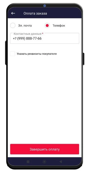 Телефон клиента Телефон клиента для связи, отображается в деталях заказа в приложении