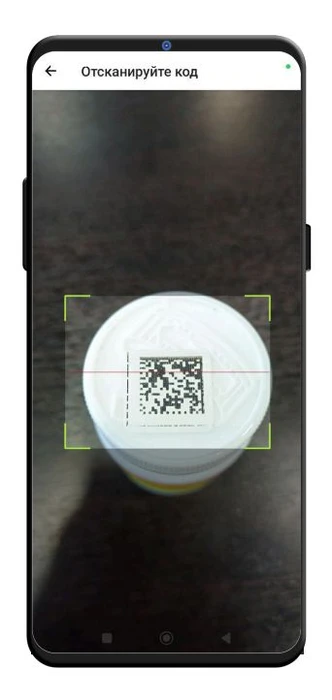 Откроется камера телефона с полем для считывания кода маркировки товара.