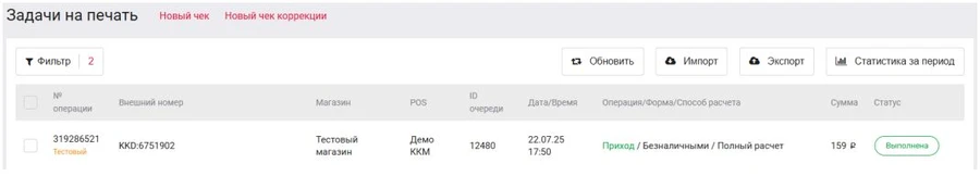 - отправка чеков в ОФД.