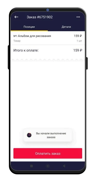 - Для выполнения заказа нужно нажать кнопку Начать выполнение.