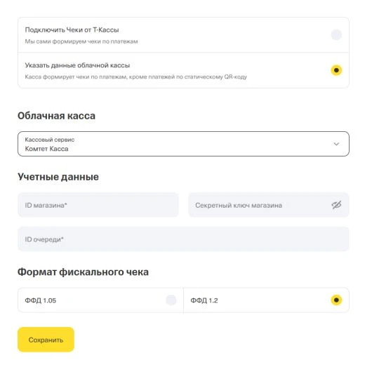 Сервис КОМТЕТ Касса предоставляет бесплатную прямую интеграцию для сервисов (платежной системы/CRM/и тд) Т-банка . Интеграция позволяет автоматически формировать чеки и отправлять их в ФНС через ОФД. Отсутствие сторонних сервисов при подключении гарантирует, что ваши коммерческие данные не будут передаваться через посредников. Следить за статусами чеков и формировать отчеты можно в удобном личном кабинете.