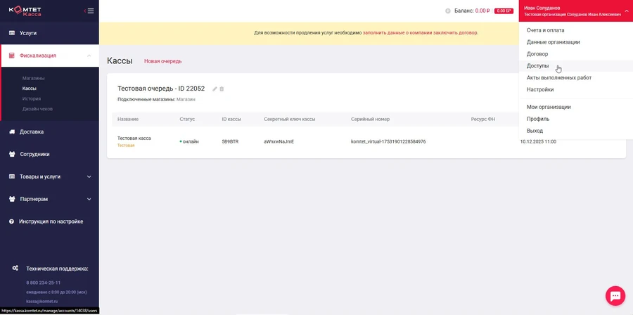 Для привязки нового сотрудника в правом верхнем углу личного кабинета перейдите в раздел Доступы