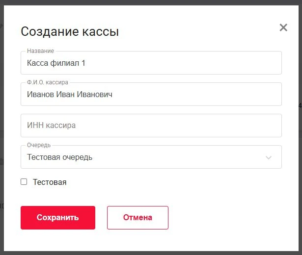 | Название* | Произвольное название кассы. Рекомендуем использовать уникальное название для каждой кассы |