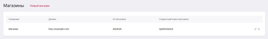 - В разделе Фискализация -> Магазины отредактируйте уже созданный магазин по кнопке Редактировать (карандаш в поле с магазином) или создайте новый по кнопке Новый магазин