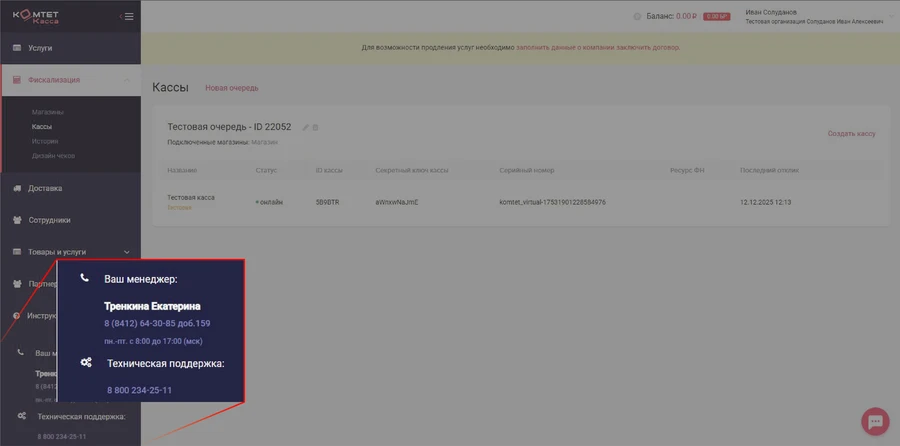 - Вы работаете через Интерфейс кассира