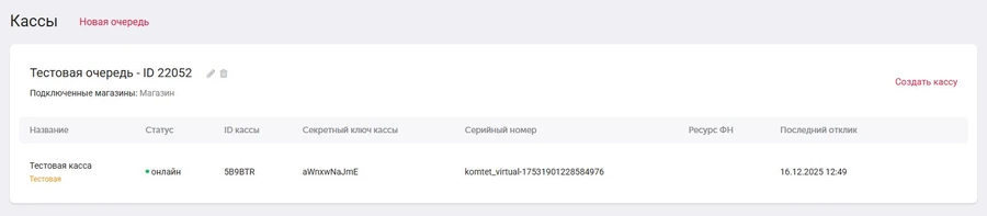 После всех операций, у вас будет создана касса с пометкой тестовая.